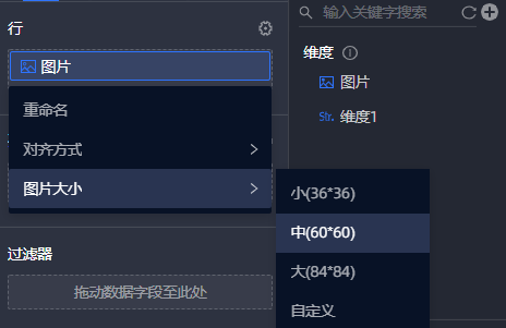 图片数据支持修改展示大小,可以设置为系统提供的大小规格,也可以自定义。自定义最大像素为180px。