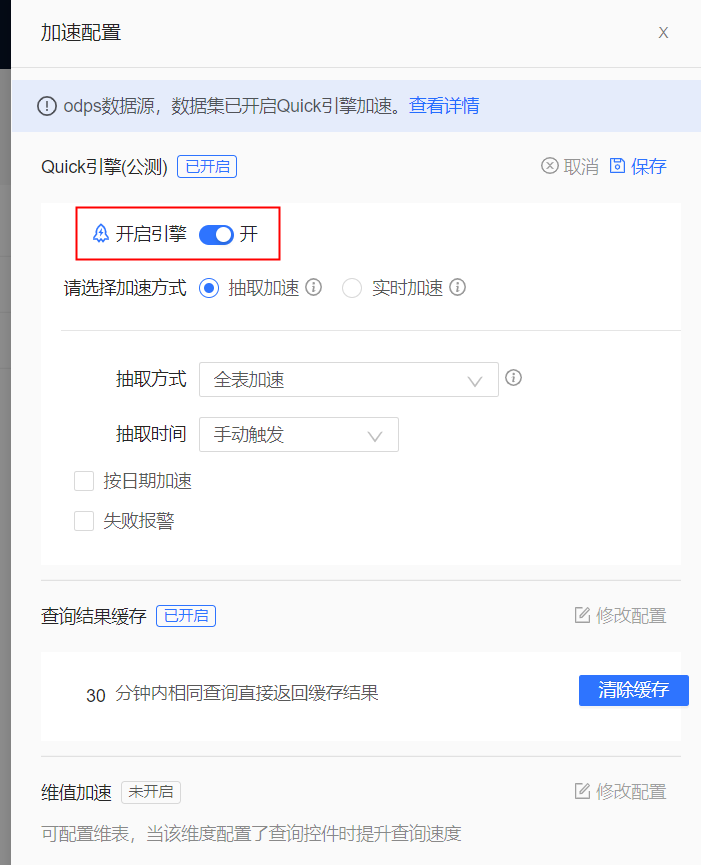 配置了加速引擎之后,如果对数据集的自定义SQL做了变更新增了字段,会导致加速引擎表中的字段不匹配,没有加速成功。