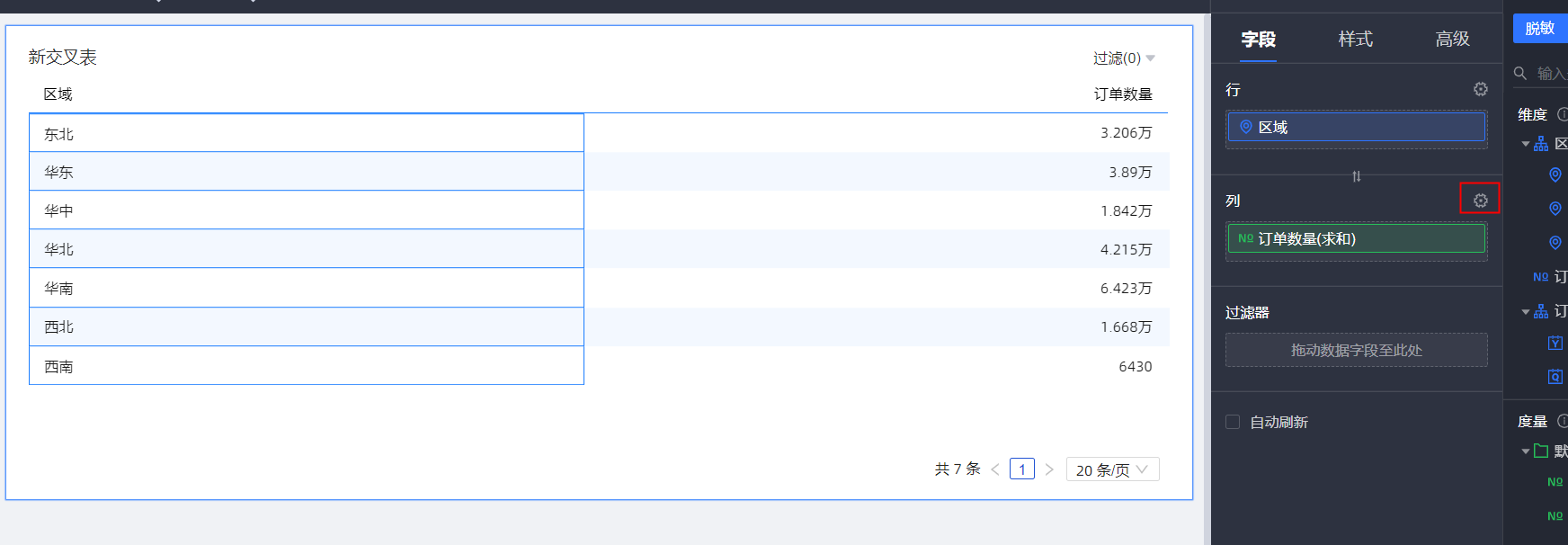 Quick BI新交叉表数据居中显示