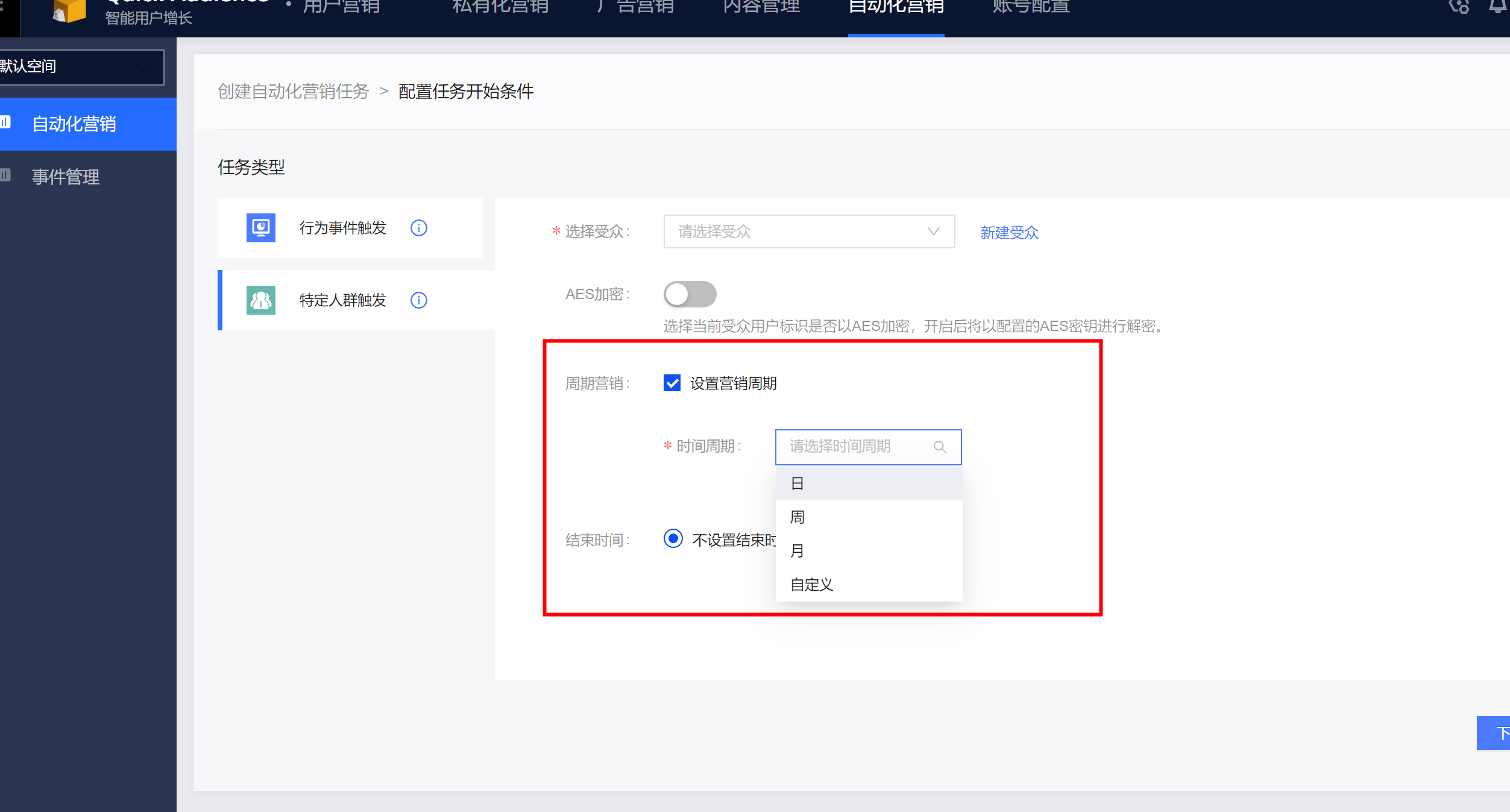不会,这里只是选了人群,周期执行是使用人群,不会去更新人群。