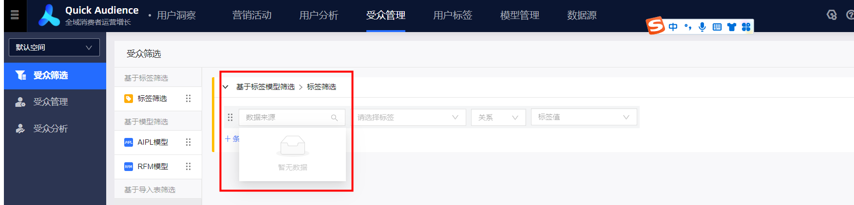 Quick Audience用户标签已经创建成功,但是在受众筛选中无法选择到该用户标签。