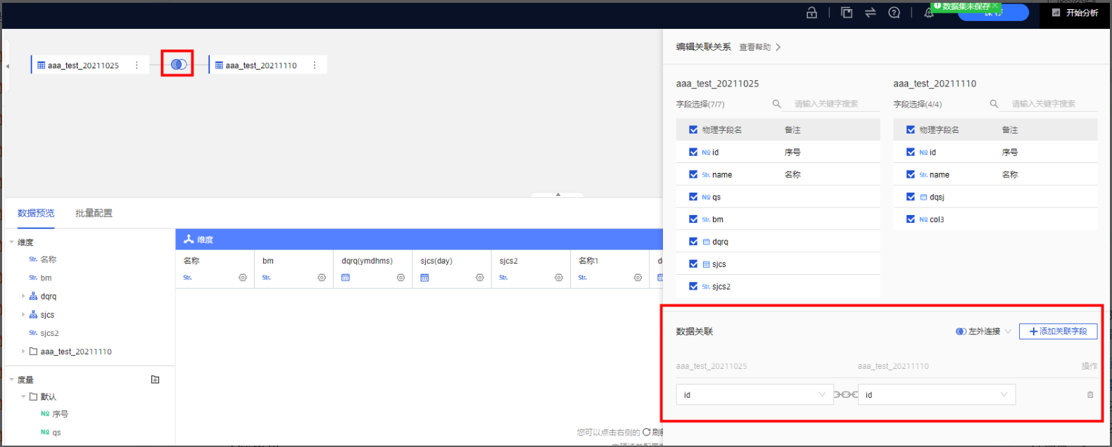 Quick BI数据集拖动表关联后另一张表的字段都是空的