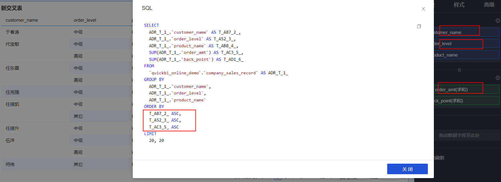 Quick BI仪表板新交叉表组内排序,不符合预期。