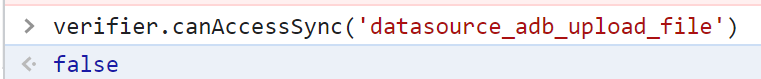 F12在控制台中输入 verifier.canAccessSync('datasource_adb_upload_file'),得到返回值false,说明功能裁剪没有开。