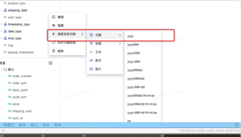 Quick BI中仪表板设置了查询控件,但是有个图表中的数据生成的SQL查询条件为null,查询图表数据为空。将图表所依赖的数据集中日期字段调整一下格式,然后再次查询时,有数据。