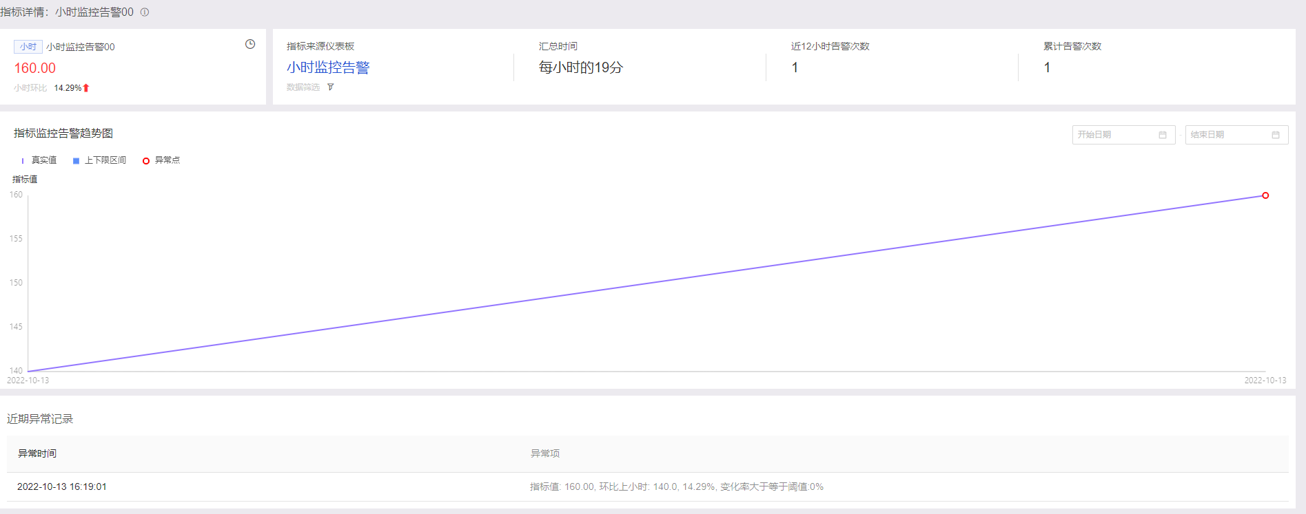 告警配置环比上小时,告警记录里面只有当前小时的实际值,没有上一小时的实际值,所以环比是0。