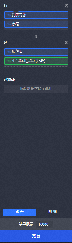 查询的数据总量是10000,维度值放在列中,会对这10000条数据进行行列混布,每一个指标最多能在10000个单元格里出现。