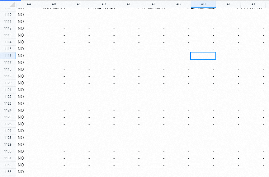 Quick BI电子表格中结果展示配置了10000,但是实际在1000多行后数据展示为空,实际这些字段是有数据的。