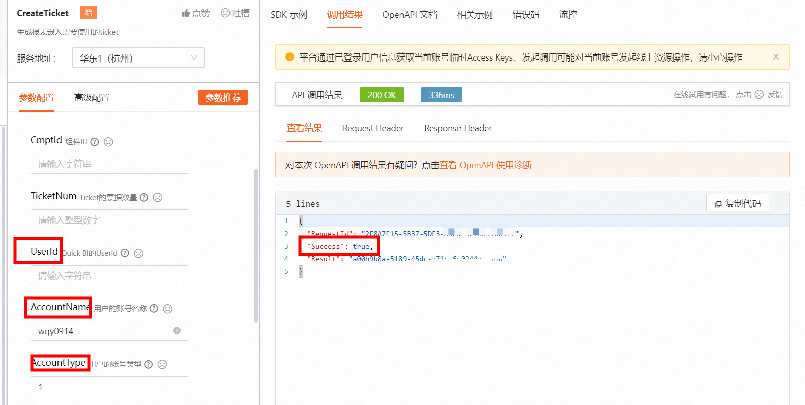 Quick BI调用接口生成报表嵌入需要使用的Ticket报错:"ApiUser.Not.Exists"