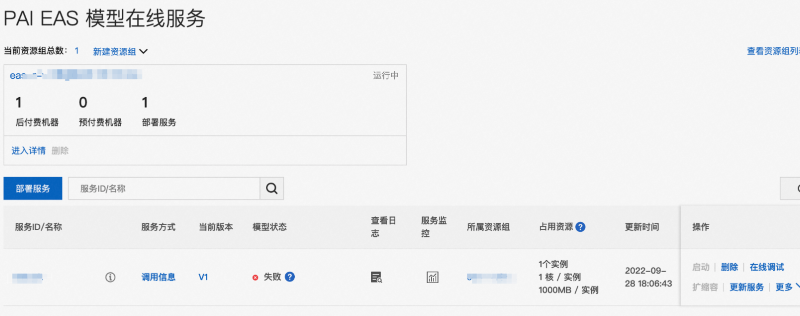 PAI EAS模型在线服务部署不成功一直提示等待中