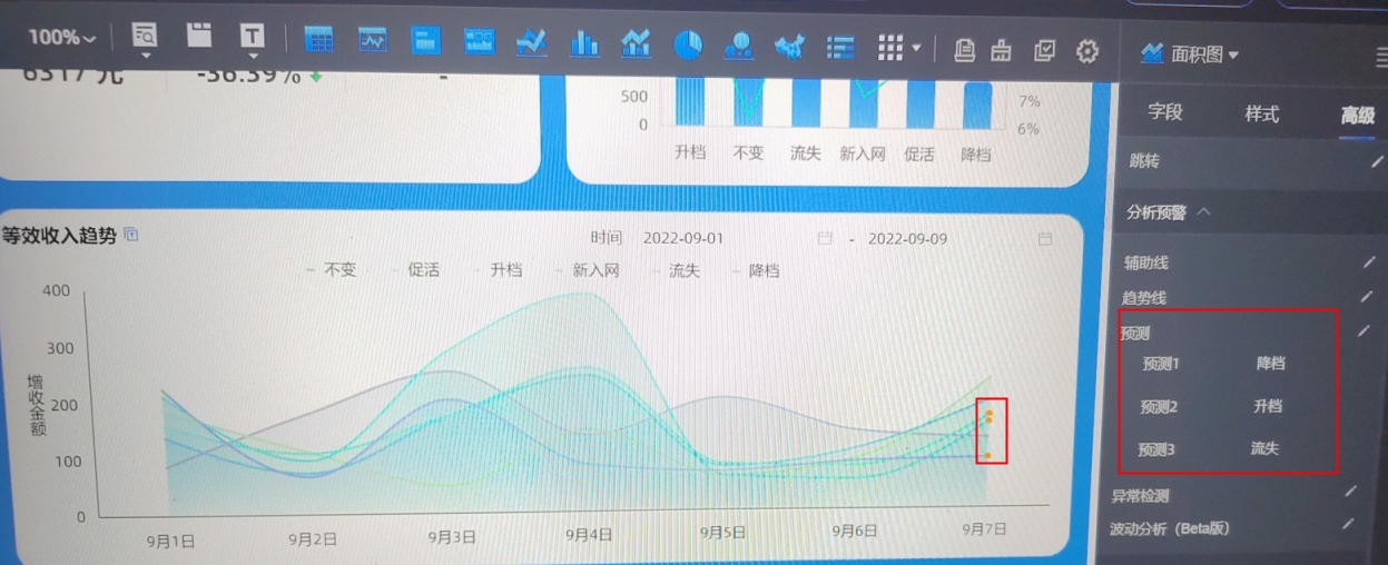 Quick BI面积图添加了预测线但是只显示橙色点。