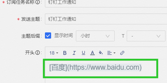 Quick BI订阅任务“开头”或者“结尾”Markdown语法插入链接的方法
