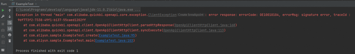 Quick BI调用Ticket三方嵌入票据信息接口报错“error response:errorCode:0E1001014 errorMsg:signature error”