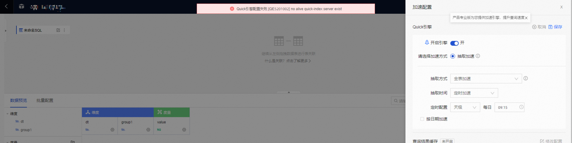 Quick BI加速引擎配置时报错:“[QE5201002]no alive quick-index server exist”