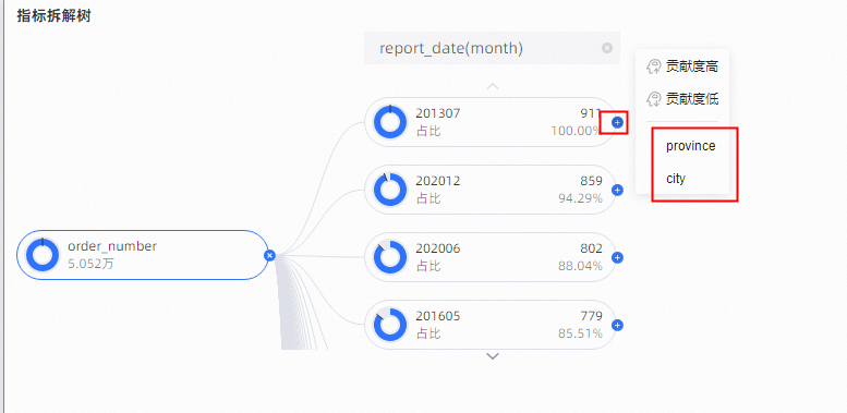 Quick BI指标拆解树如何修改字段的展示顺序。