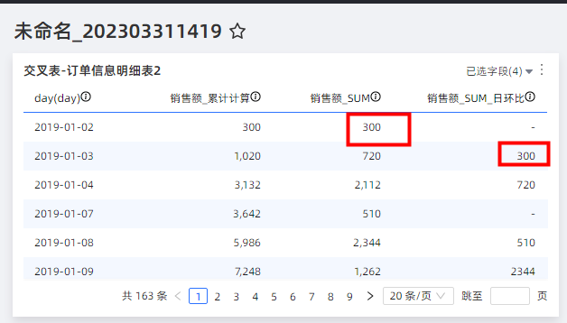Quick BI如何实现今日和昨日销售额在一个表中显示