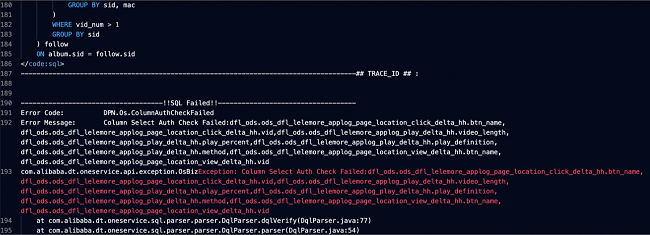 某张表新增字段后,之前写好的SQL离线计算任务,SQL中没有明确用到新增字段,但是报错没有该新列的Select权限,导致任务失败。