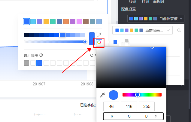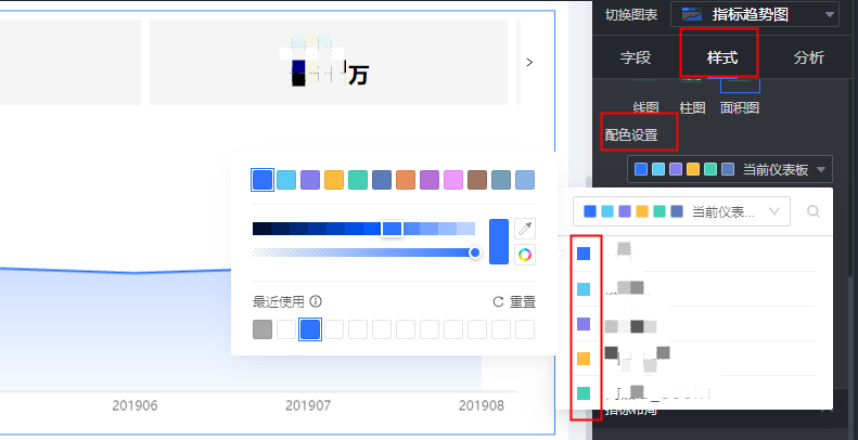 Quick BI仪表板图表样式设置颜色时,怎么设置颜色值。