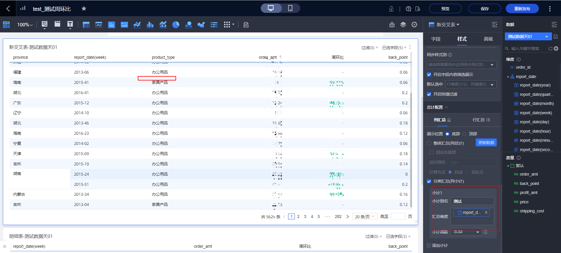 Quick BI中交叉表设置了分类小计为什么不生效