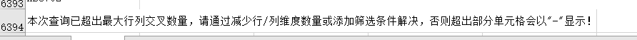 Quick BI仪表板新交叉表总行数没有超过1万,图表导出Excel内容提示‘本次查询已经超过最大行列交叉数据量,请通过减少行/列维度数量或添加筛选条件解决,负责超出部分单元格会以“-"显示!’。