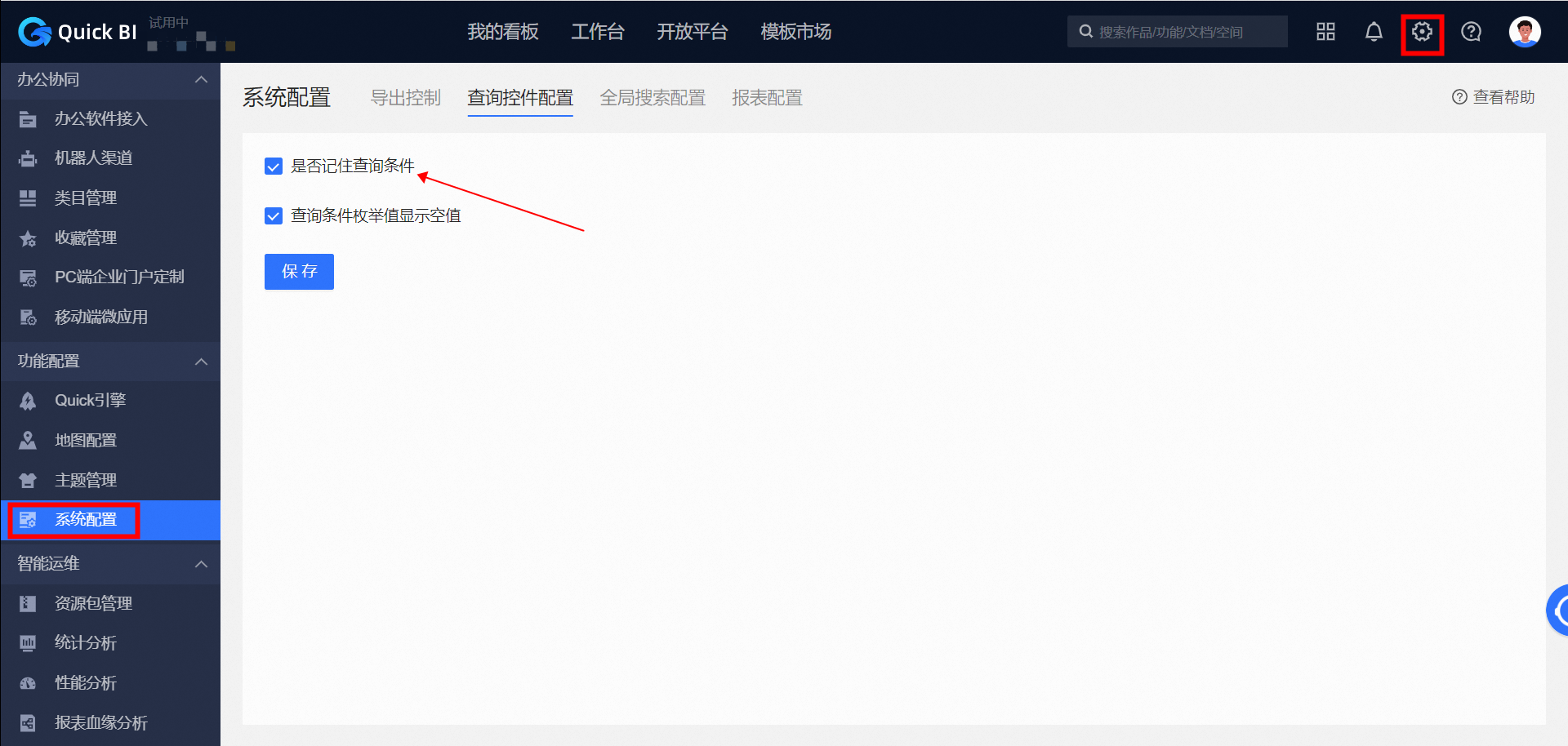 中,勾选“是否记住查询条件”即可。