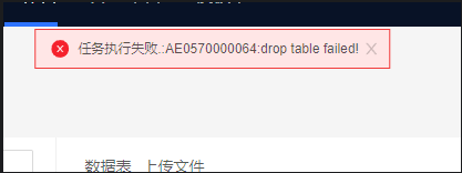 Quick BI上传文件界面删除已上传的文件提示“drop table failed”,异常显示如下: