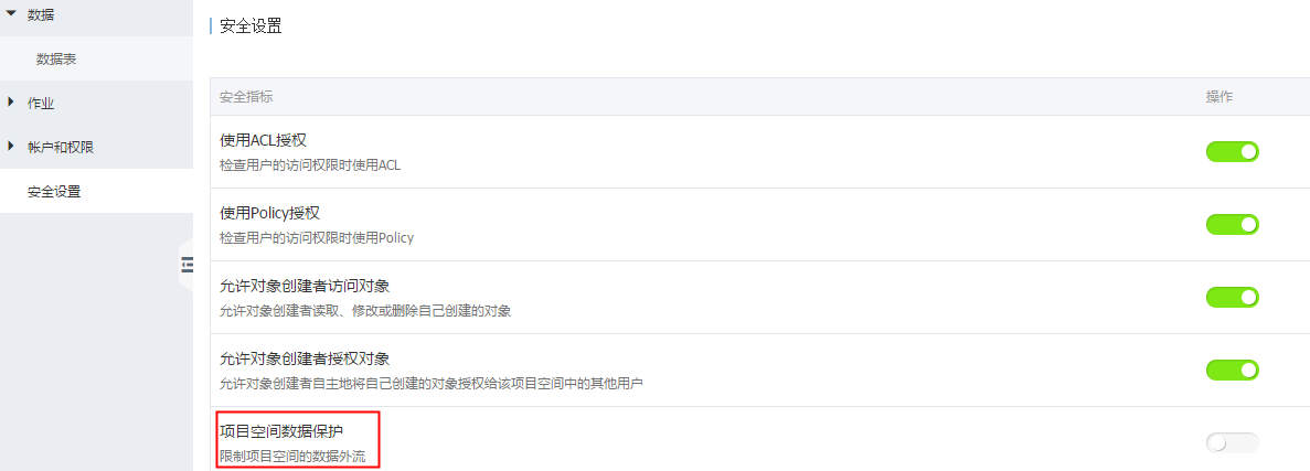 ,数据无法以任何手段从 MaxCompute 项目导出到任何地方。用户可以在 MaxCompute 控制台中关闭这个设置。