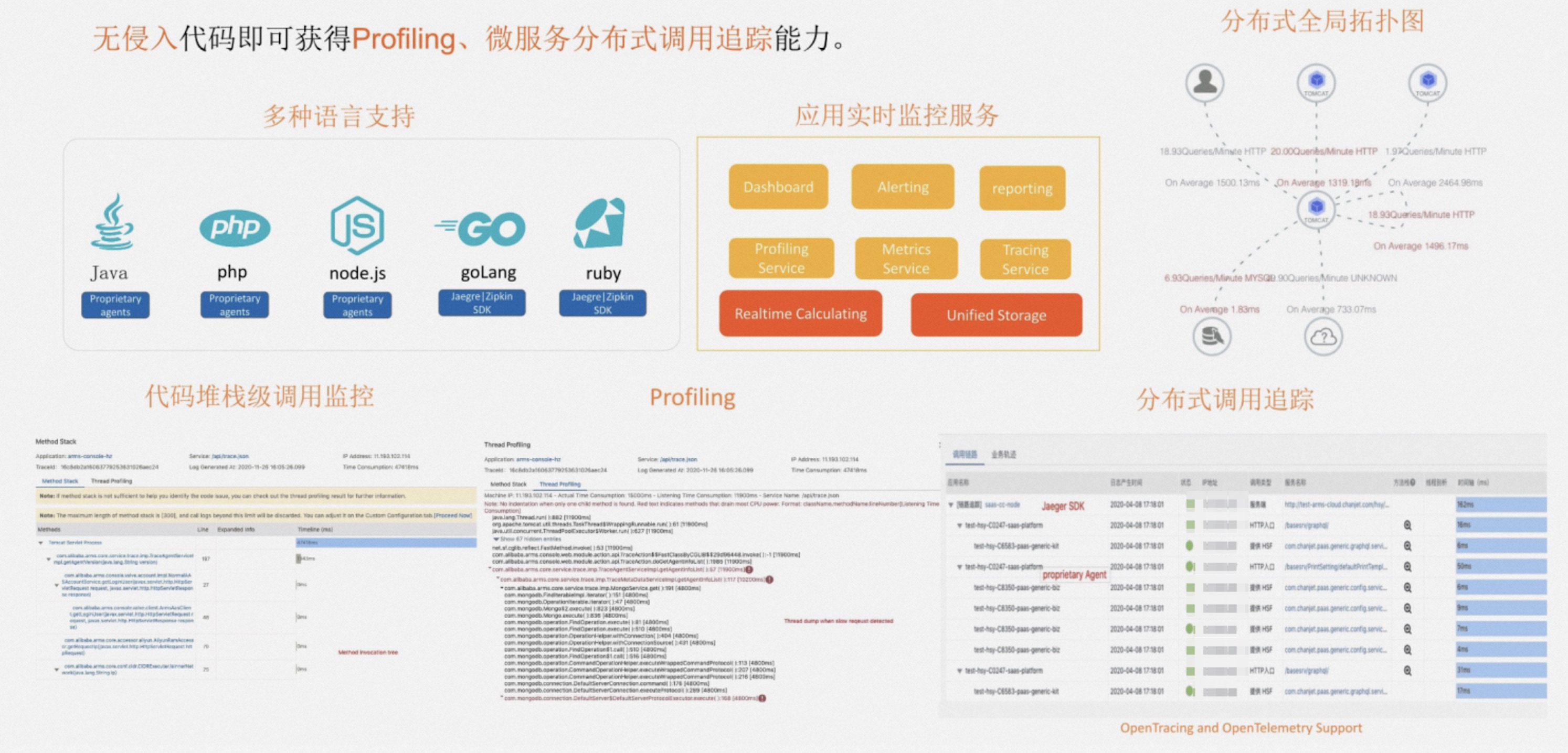 适用部分场景,包括JAVA、PHP应用的应用监控,方案接入支持无侵入方式,无需进行代码改造。 |