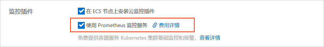 在创建集群时,系统默认选中使用Prometheus监控服务。