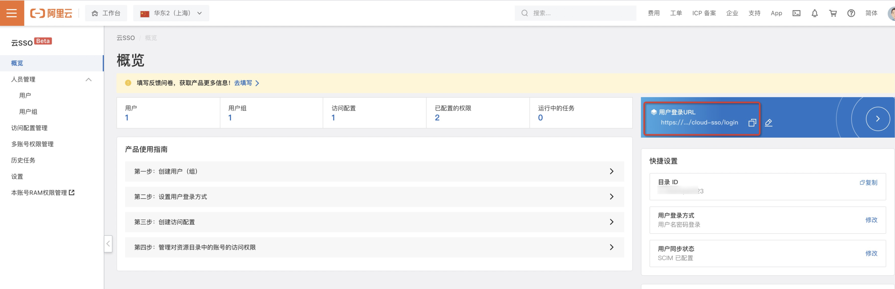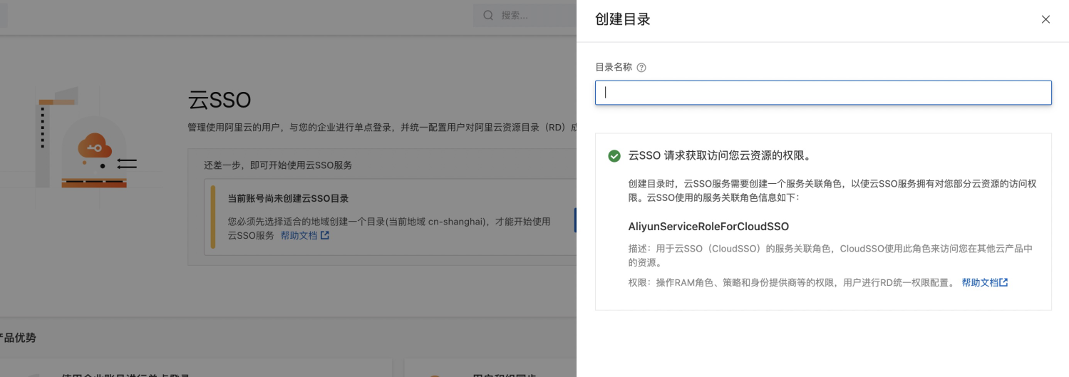 首次使用时需要创建云SSO目录,只能创建一个目录