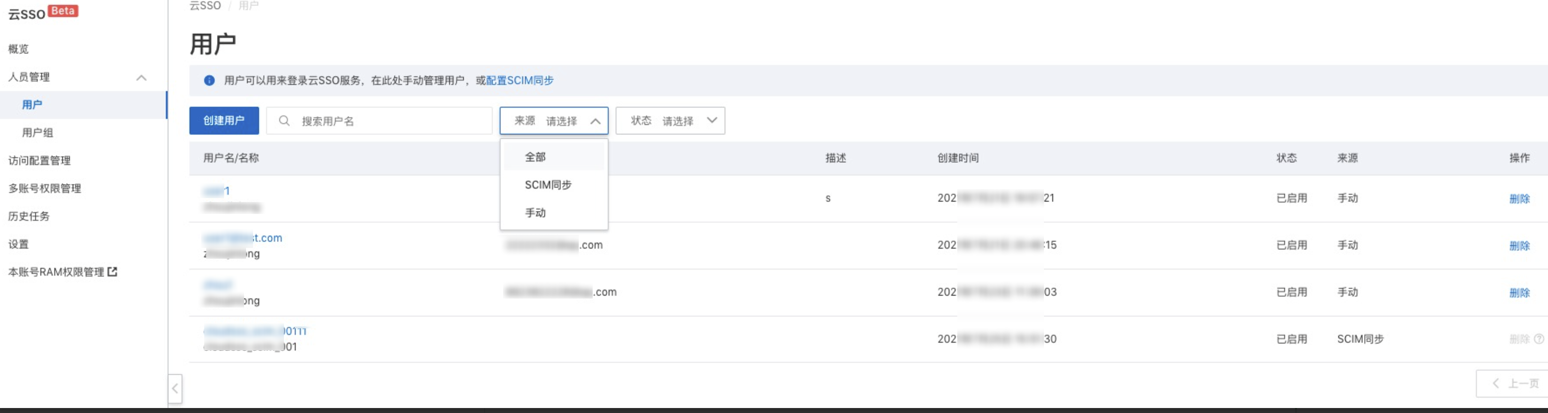 - 删除:删除RAM用户同步时,会删除已同步的RAM用户。
