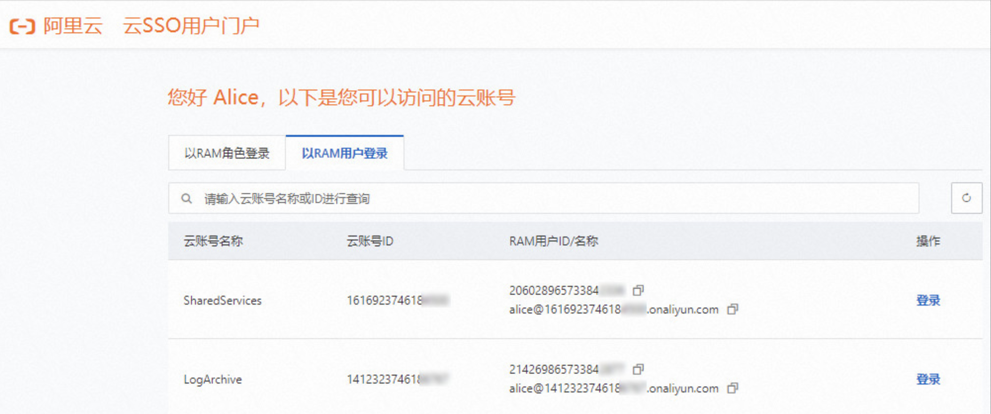 多账号场景的企业,客户可以将每个账号内的RAM角色与企业IdP进行集成,并要求企业用户使用SSO方式登录阿里云控制台。