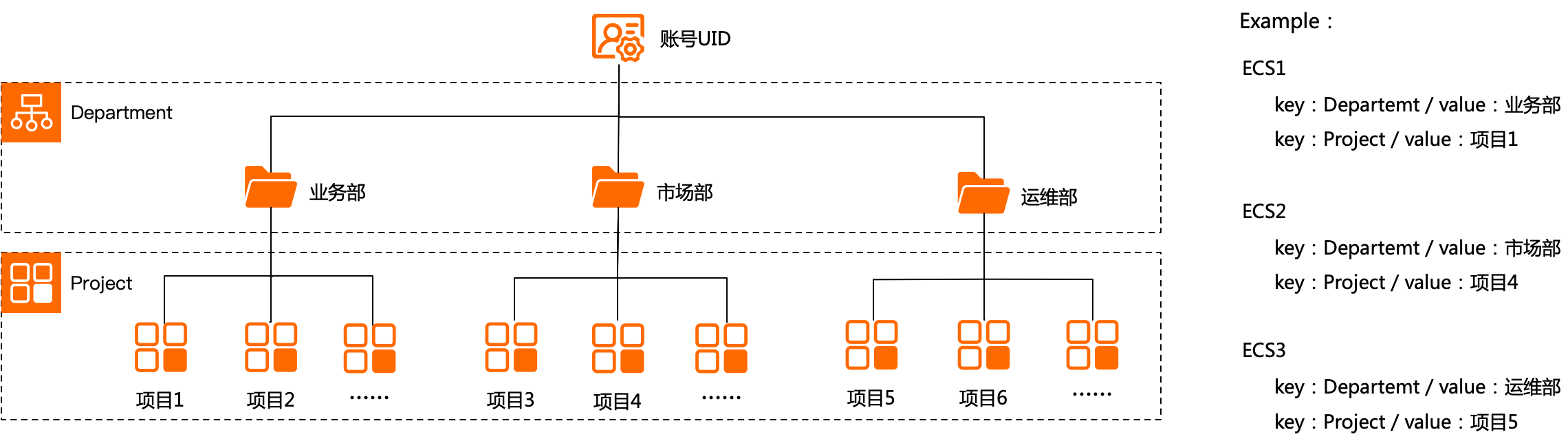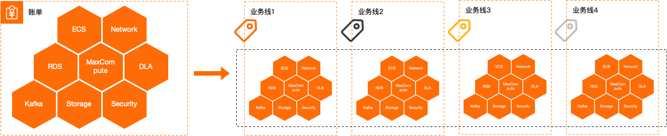 典型的场景:比如某个公司多个项目在使用云资源,财务希望按照项目进行出账,以解决财务成本分摊的问题。