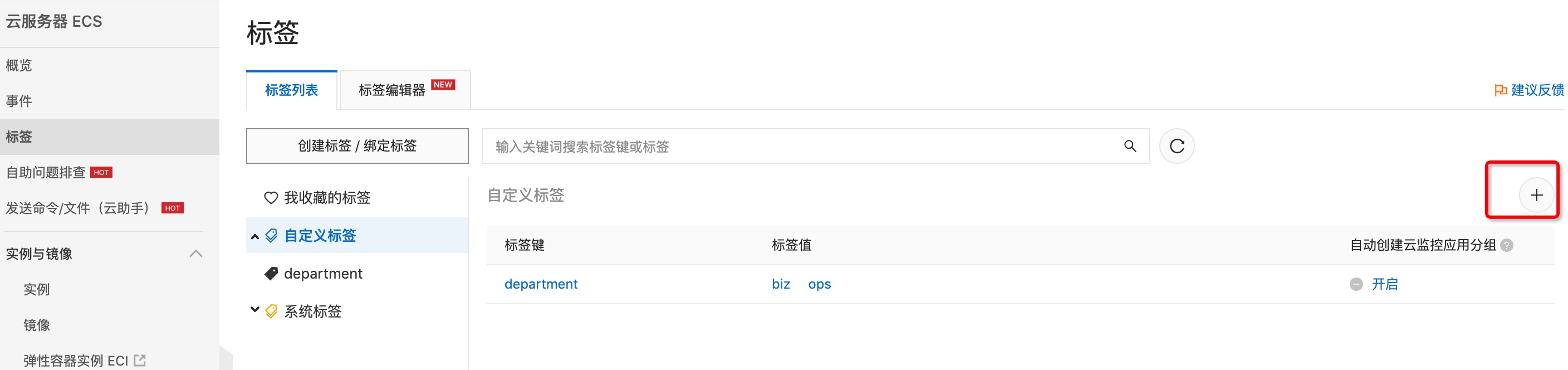 - 创建资源的时候打标。比如在购买ECS的时候可以直接打标签。