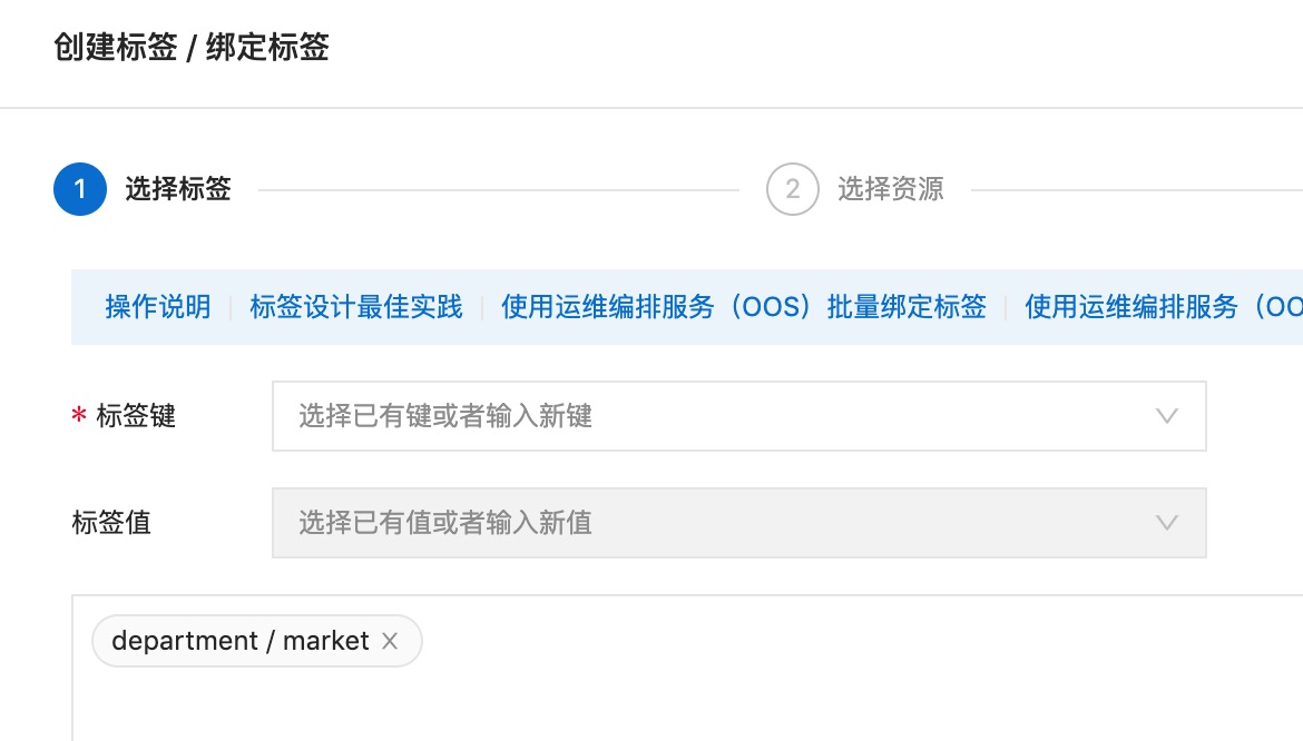 - 创建资源后进行补打标签。包括一些存量资源打标。