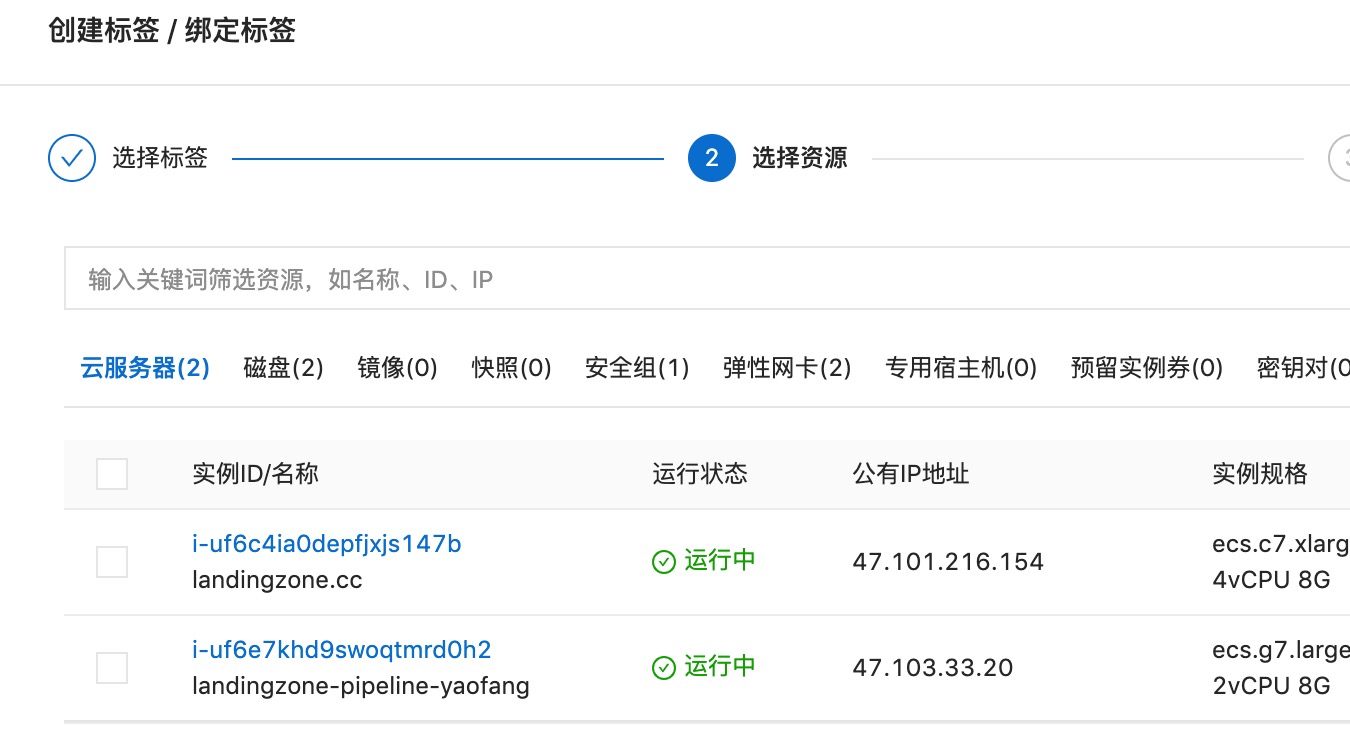 - 通过控制台打标,阿里云有统一的标签控制台入口进行标签和资源的管理