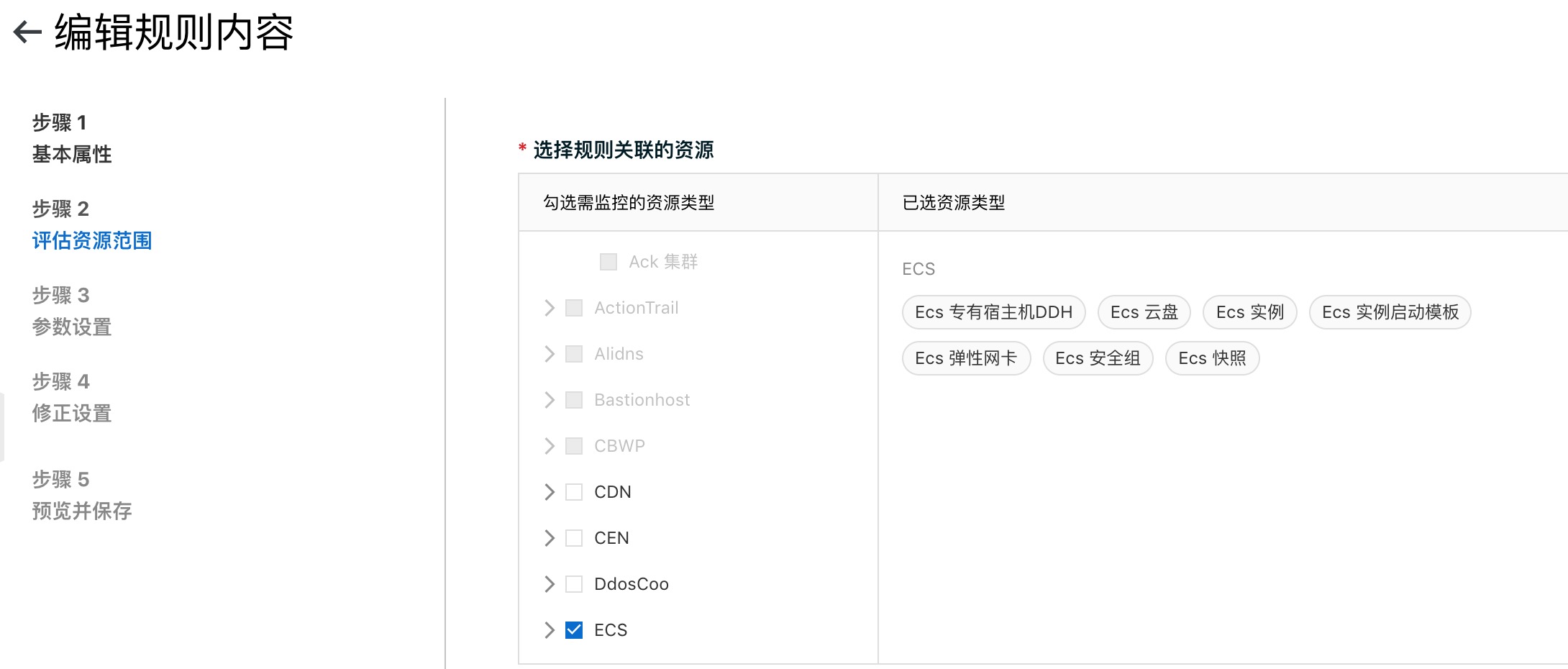 步骤三 选择要监控的资源类型。本案例中请选择ECS。