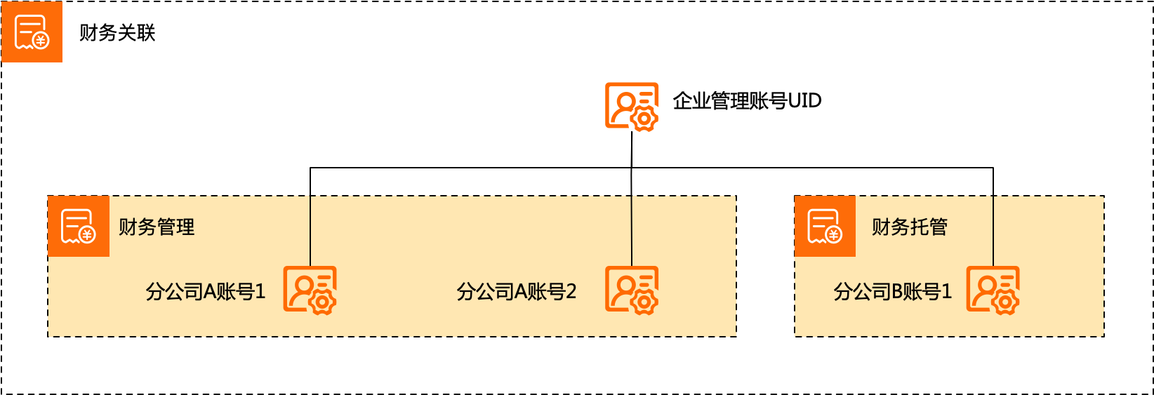 - 企业管理账号ABC:统一管理各分公司云账号的财务内容。