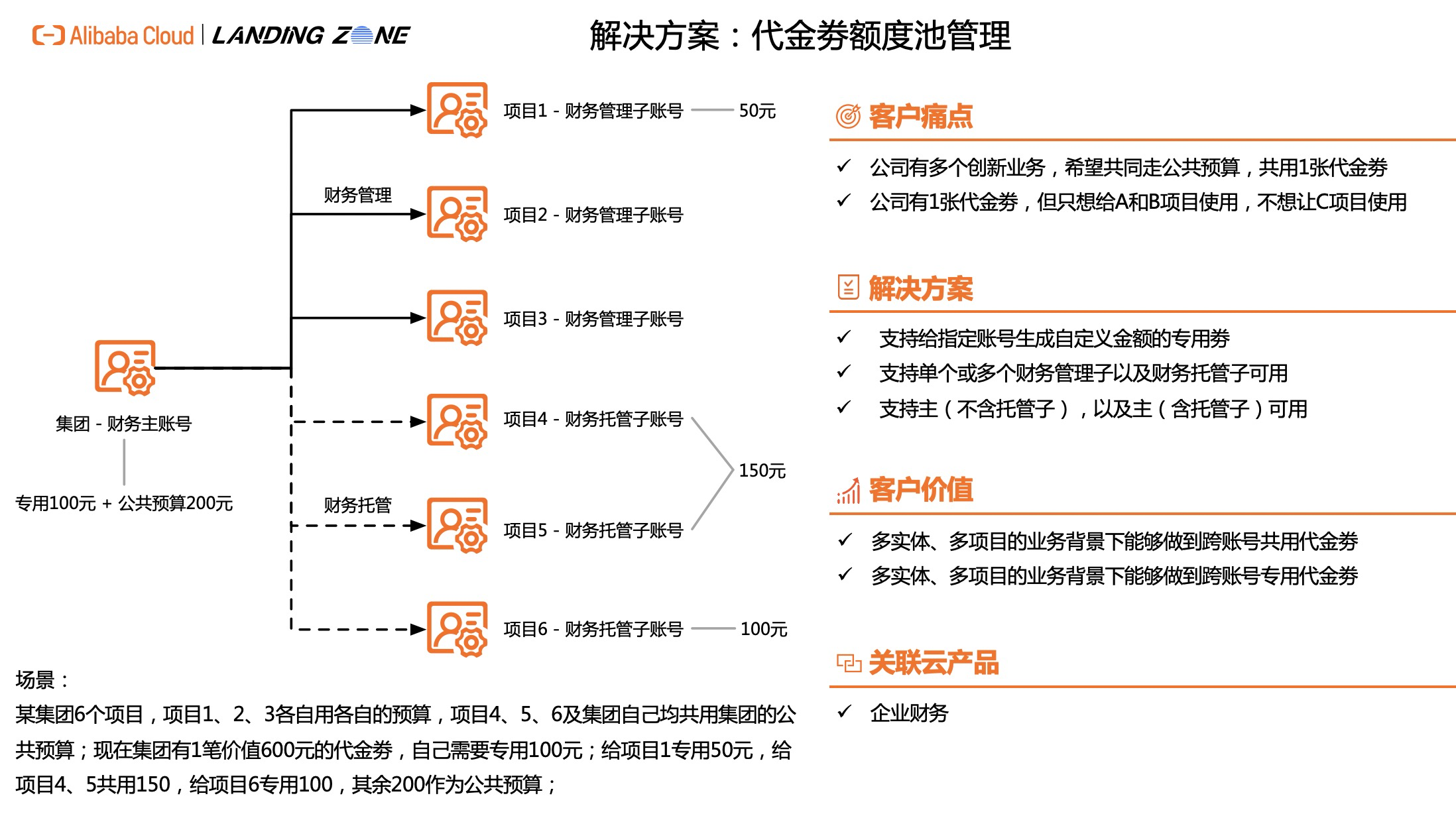 - 跨账号共用代金劵:公司下孵化了N个创新业务,希望共同走公共预算,共用1张代金券。