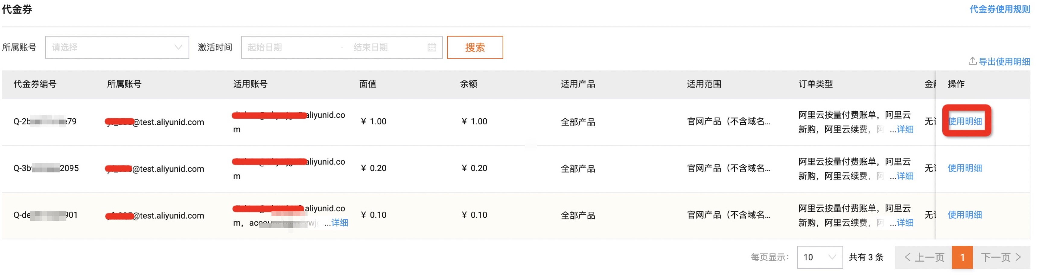 阿里云-用户中心-统一账户-代金劵额度池 阿里云-用户中心-卡劵管理-代金劵管理 |