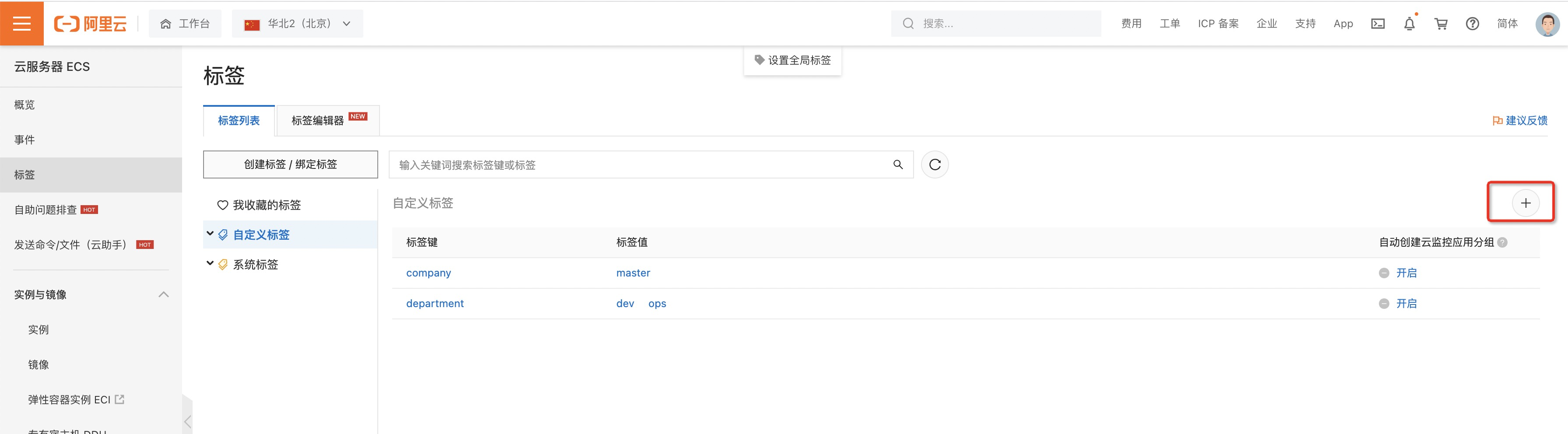 - 在相应账号下对关注的资源打标签,使资源具备业务属性。