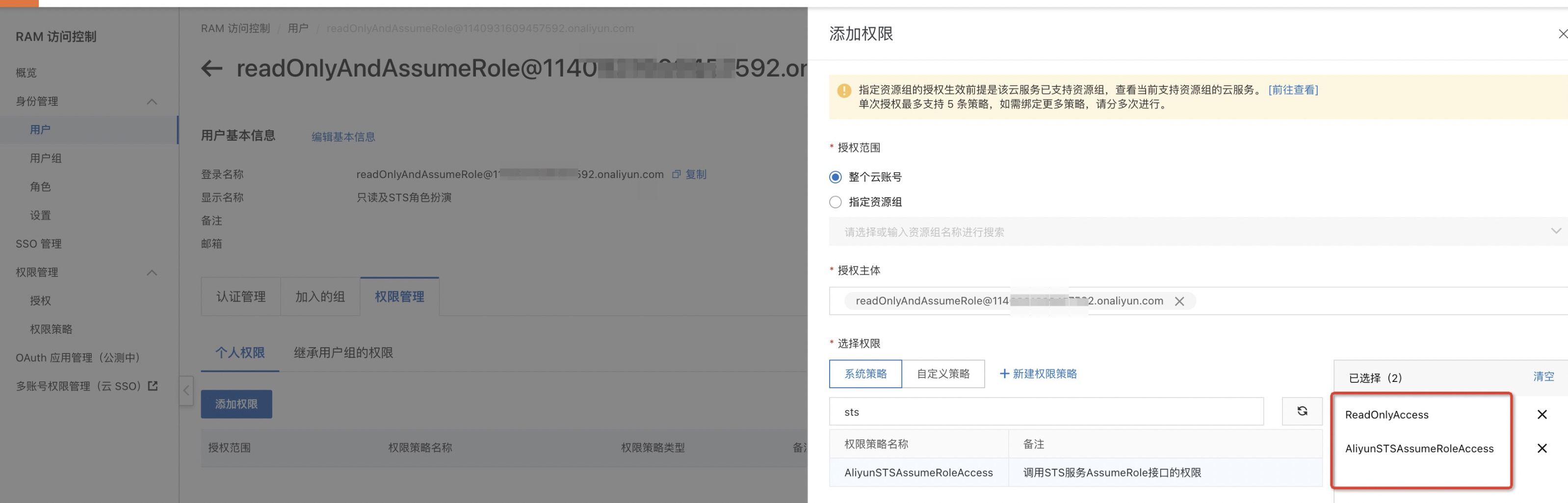 # 成员账号,管理账号扮演资源目录角色获取STS令牌