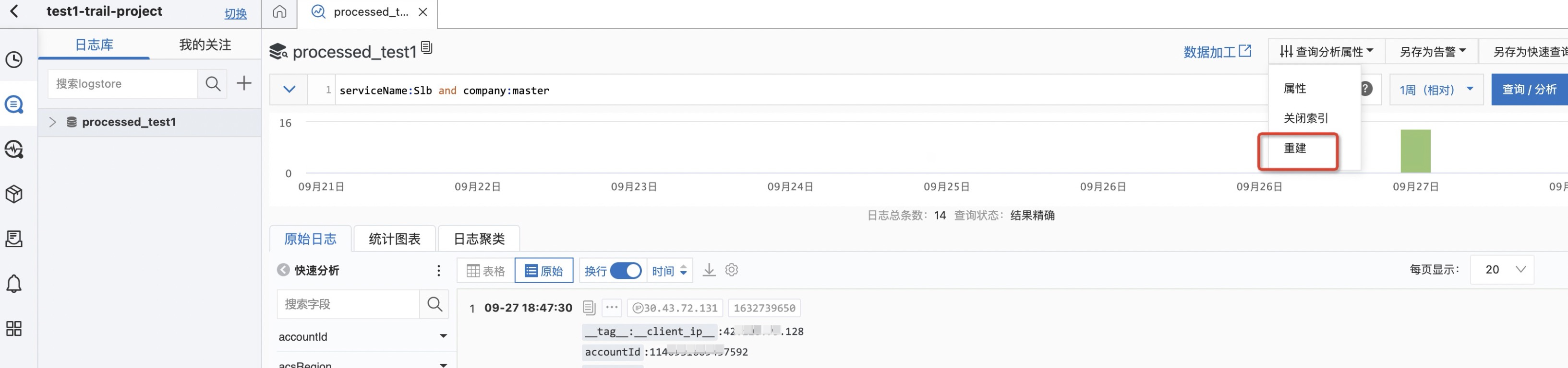 - 按需重建索引。建立索引后只对之后的日志写入生效,如果需要按字段查询历史数据需要进行索引重建。