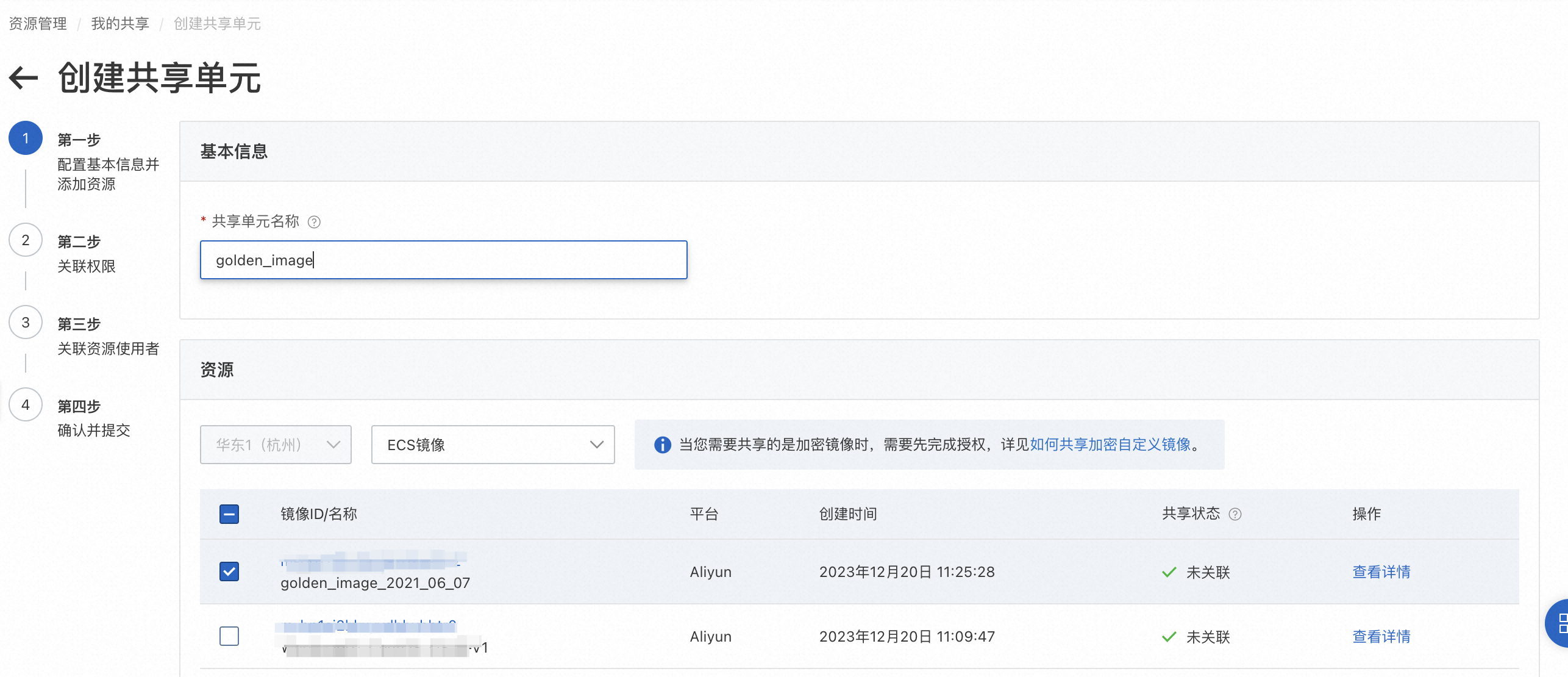 - 使用共享单元分发基础镜像到指定资源目录下的所有成员账号,新加入的账号也能自动完成基础镜像的共享,提升运维效率。