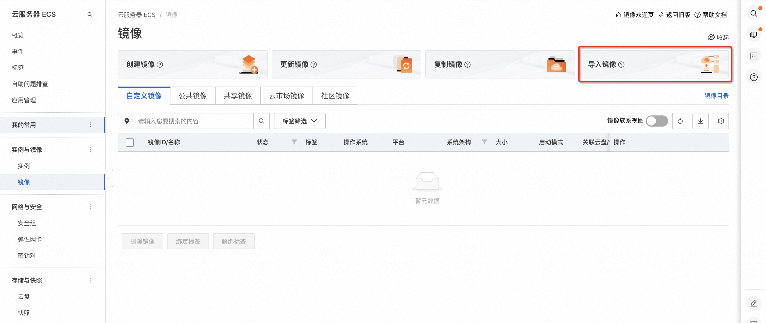 - 每份自定义镜像最多可以共享给50个用户。