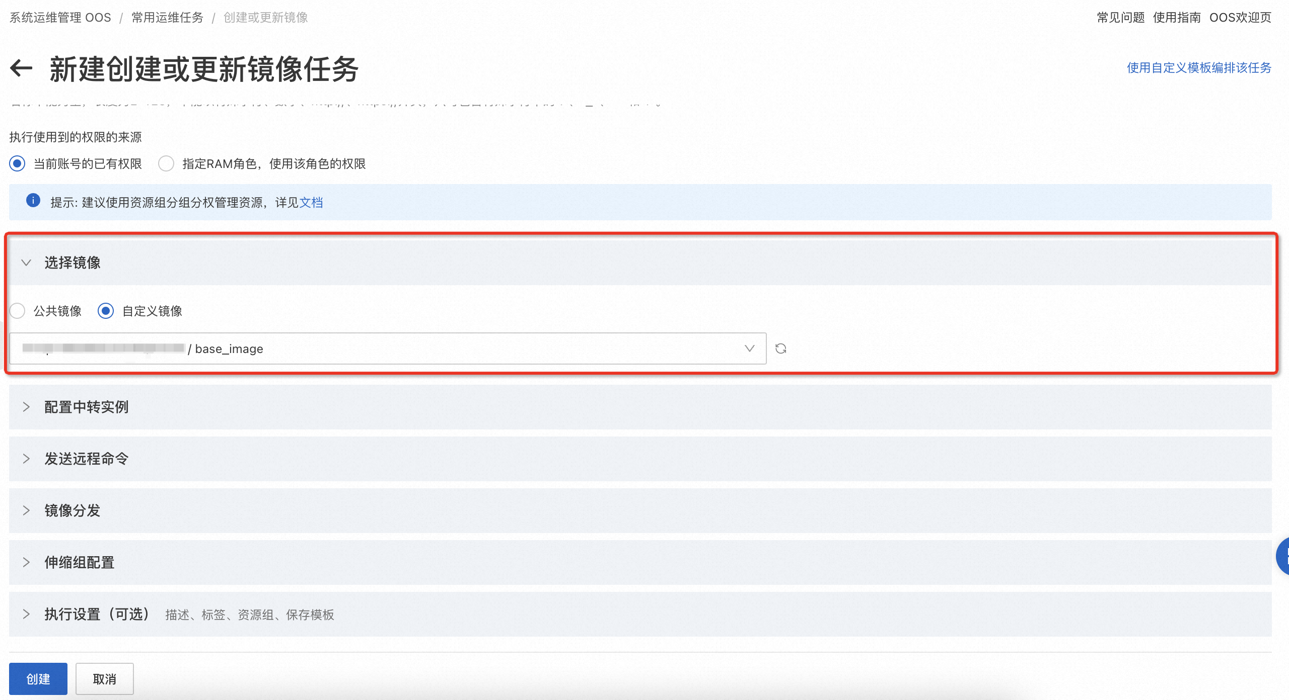 - 使用系统运维管理服务构建基础镜像。