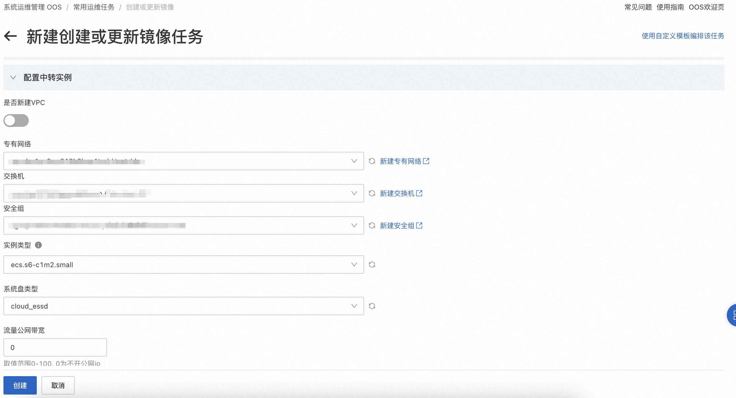 用来配置中转 ECS 实例。该中转实例用于创建新镜像和漏洞扫描。 |