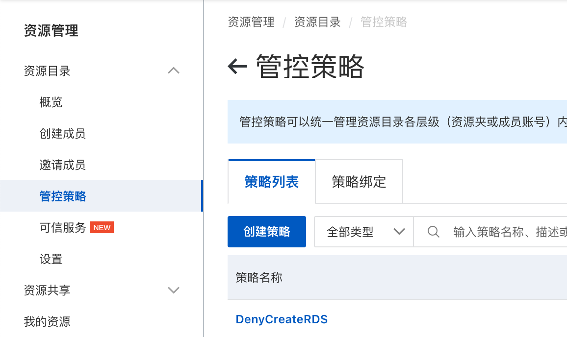 - 管控策略对服务关联角色不生效。当云产品使用服务关联角色进行资源操作时,不受管控策略限制。