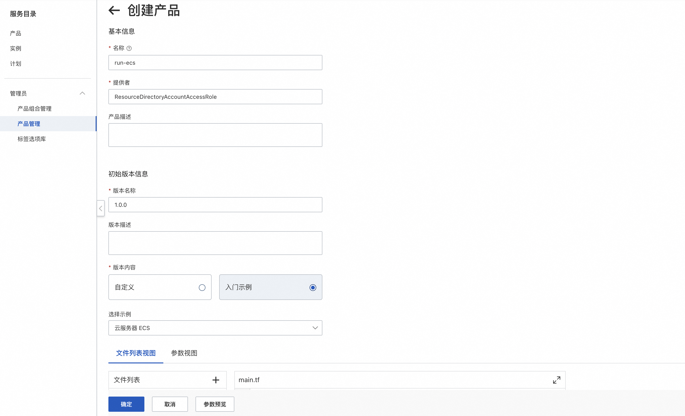 - 单击启动产品,填写参数并预览启动。由于在模版约束中,约束了 image_id 参数的选择范围,终端用户只能通过该产品,创建出使用 Golden Image 的 ECS 实例。