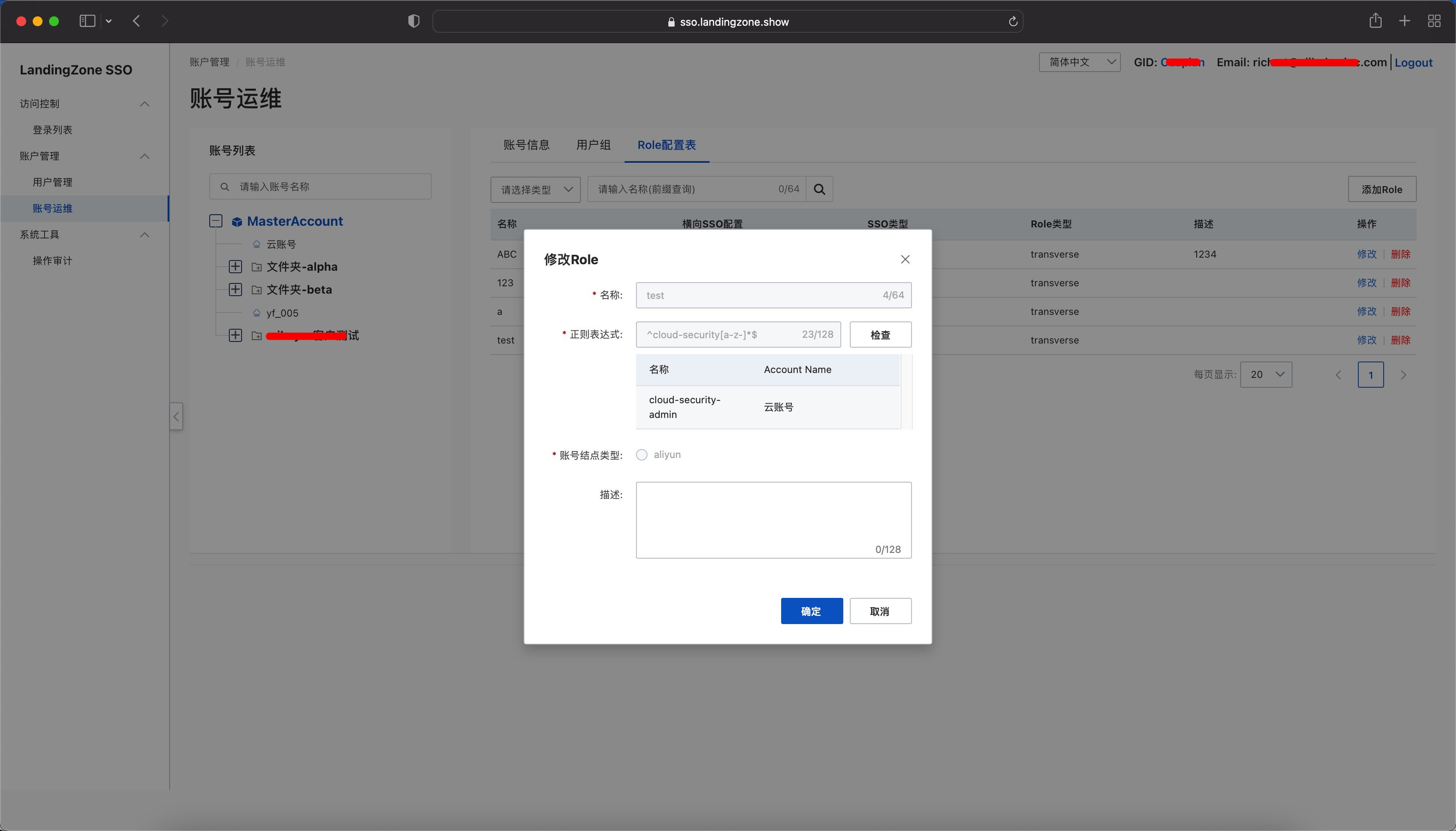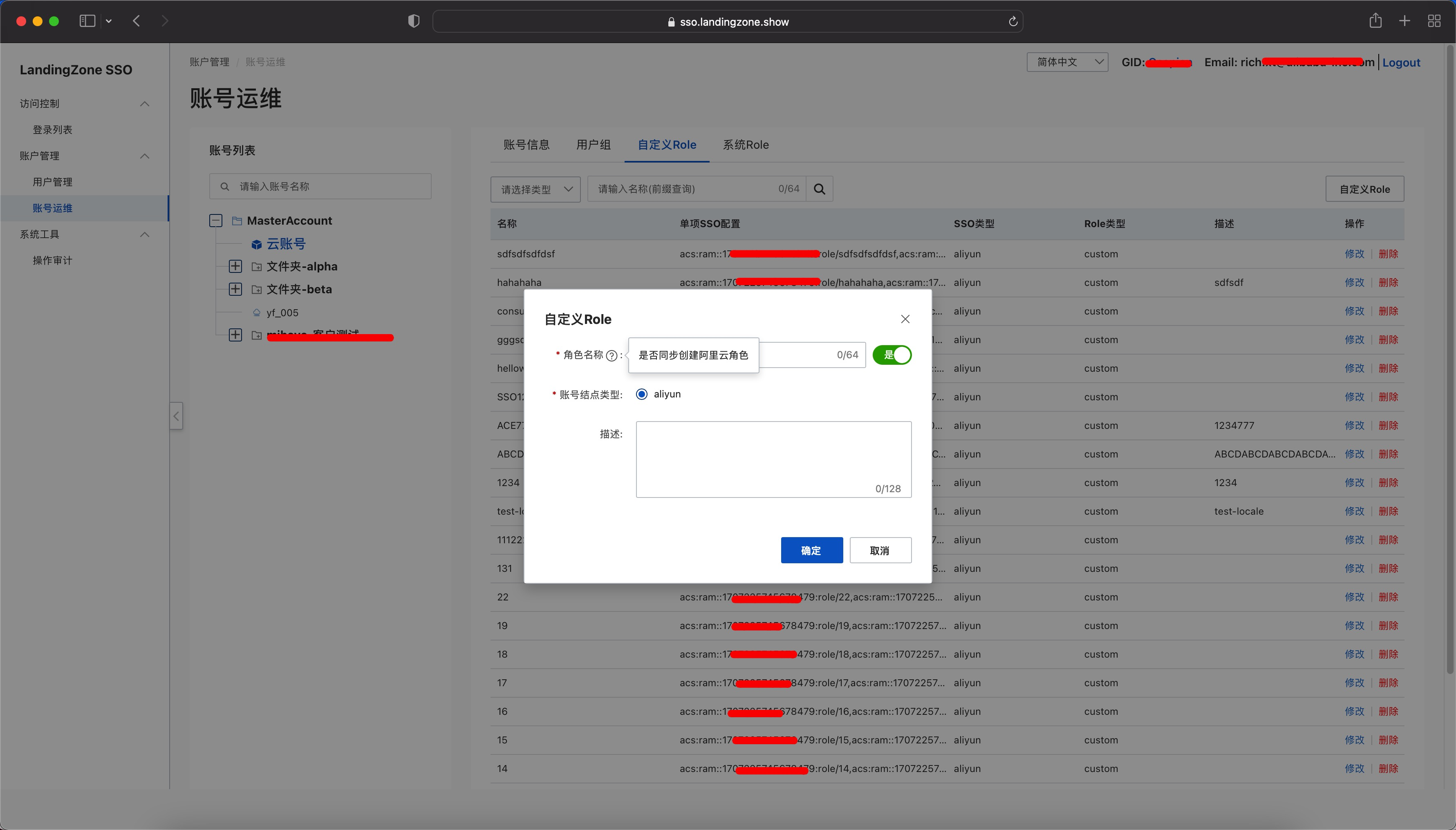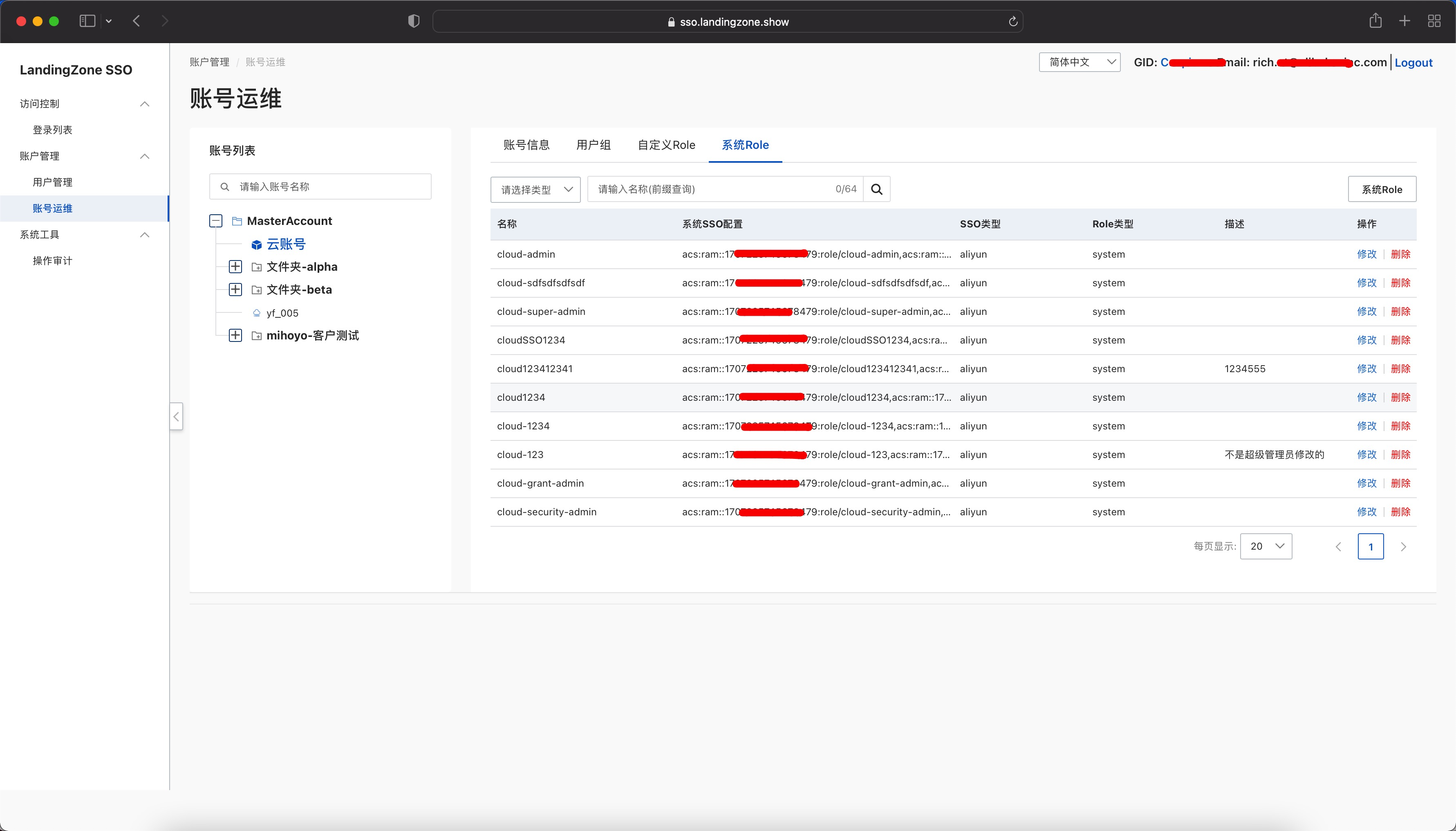 账号运维核心功能是对结点组织结构,纳管的阿里云账号关联信息,以及授权用户进行阿里云账号访问控制等的管理功能集合。